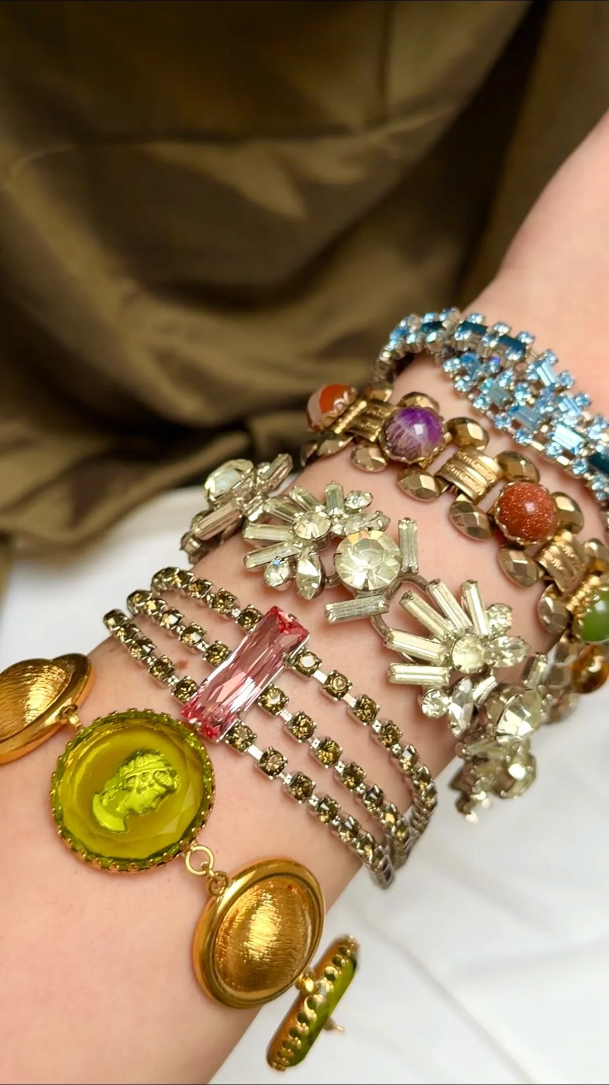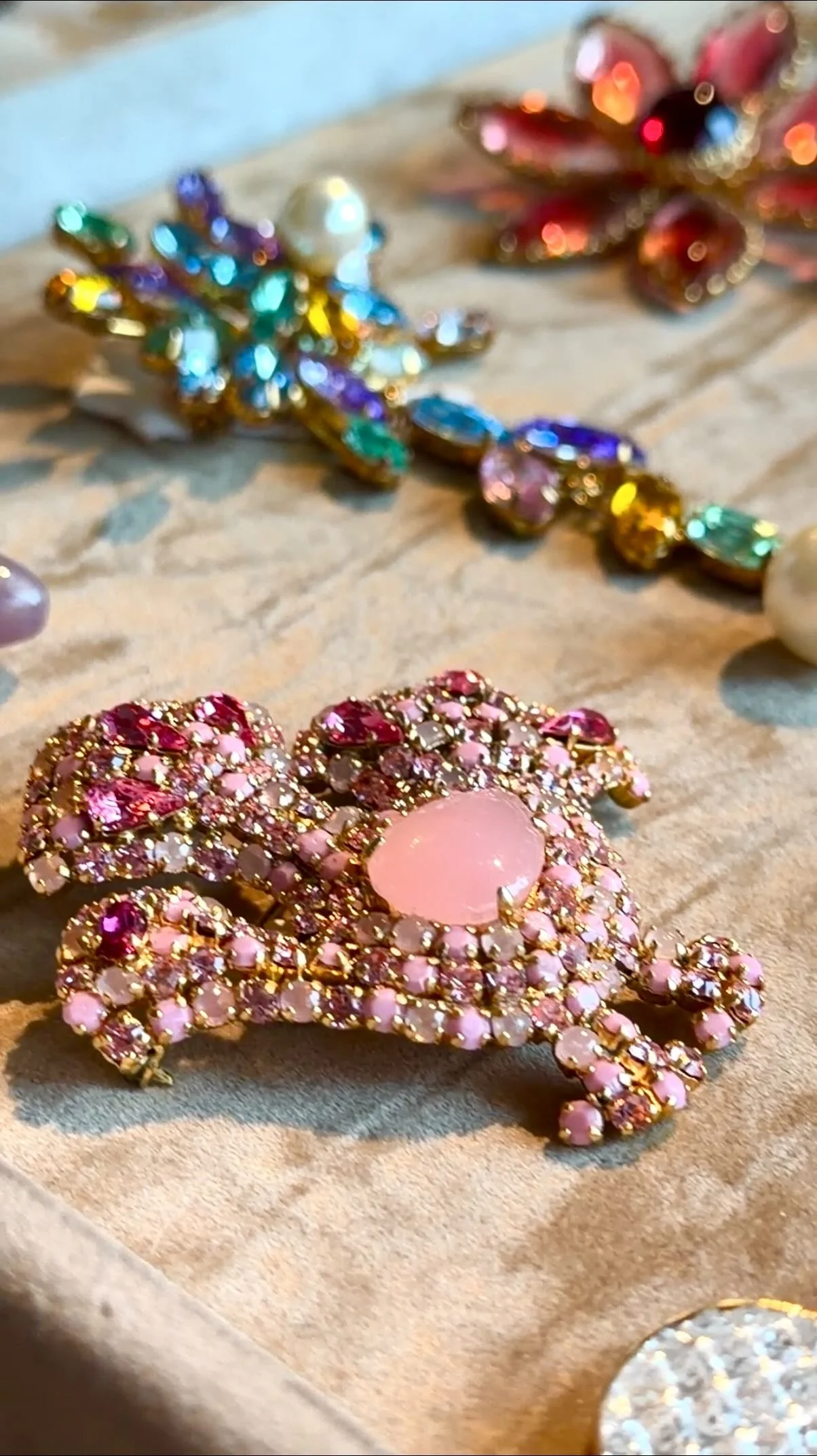 Our Christian Dior collection comes from a remarkable source: a lady whose father owned a jewelry factory in Germany and worked as a subsupplier for Grossé. He maintained a private collection of one-of-a-kind/samples pieces he created for Dior. Some of the pieces were used for fashion shows and theaters. The unique items were never sold and never worn, super rare and highly collectible.